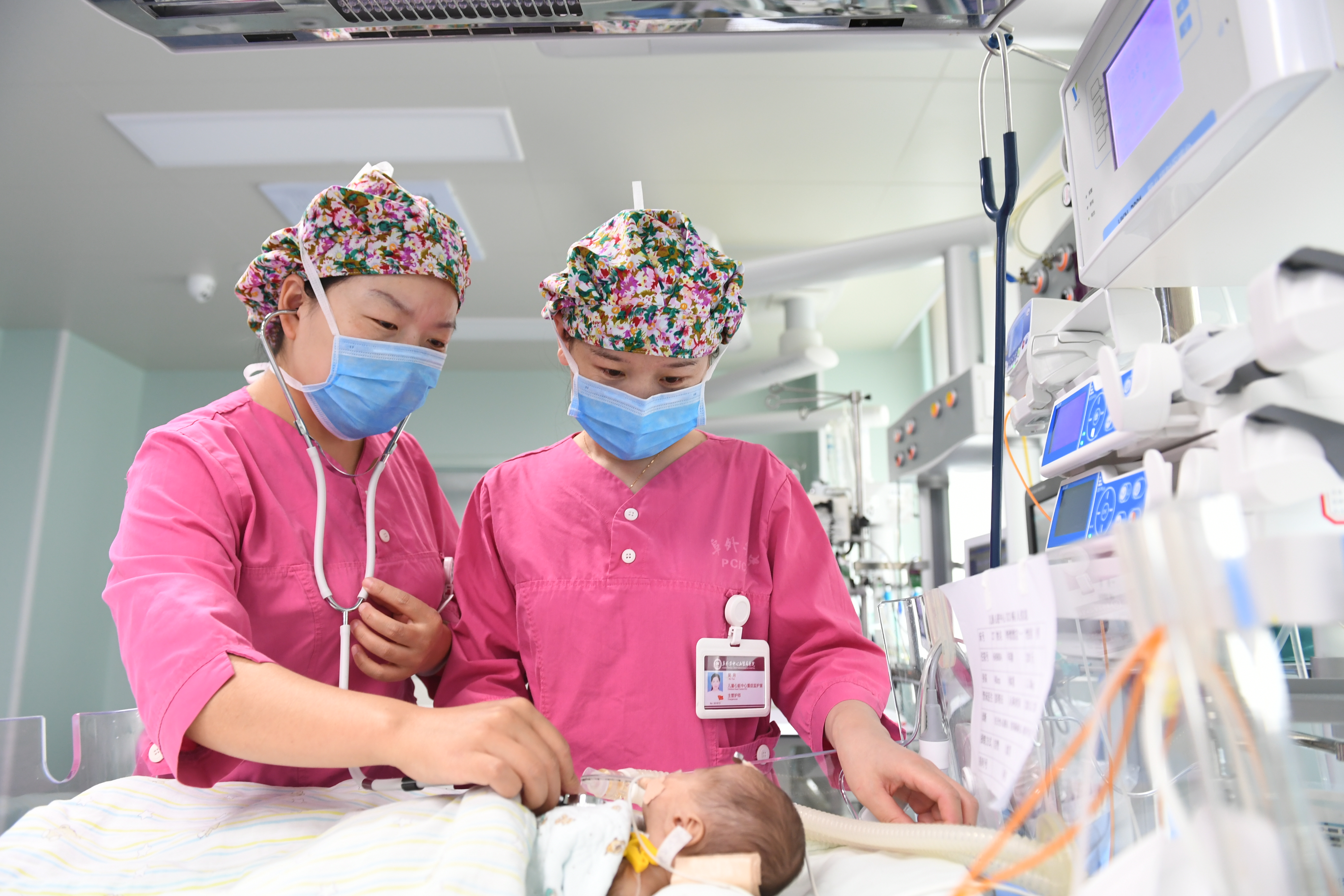 在华中阜外医院现代化的A4手术间,麻醉科副主任邱林教授精准完成动静脉置管,精细控制药量,为孩子实施麻醉。