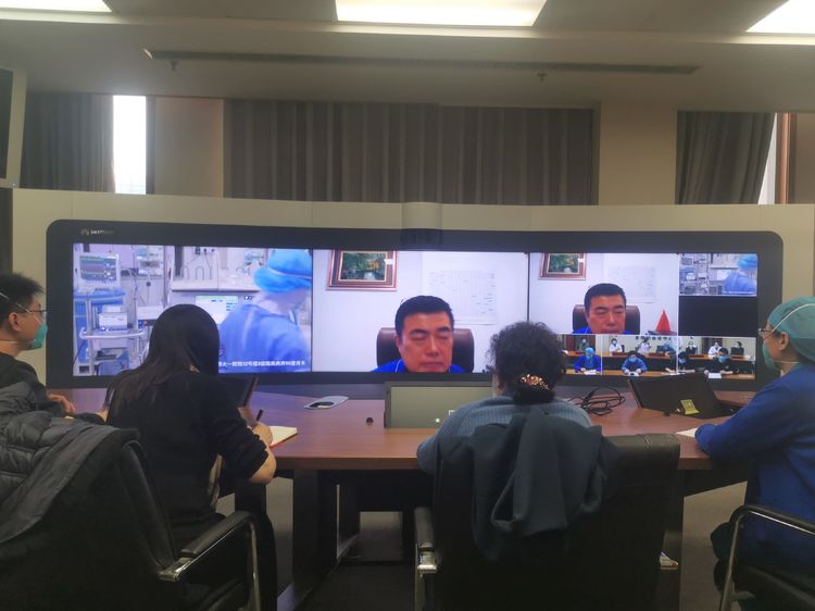 大河网讯 2月12日下午,郑州大学第一附属医院副院长苟建军带领该院专家团队,在国家远程医疗中心连线301医院(解放军总医院)呼吸与危重症医学科主任解立新,对郑大一附院三例重症的新冠肺炎患者进行远程会诊。