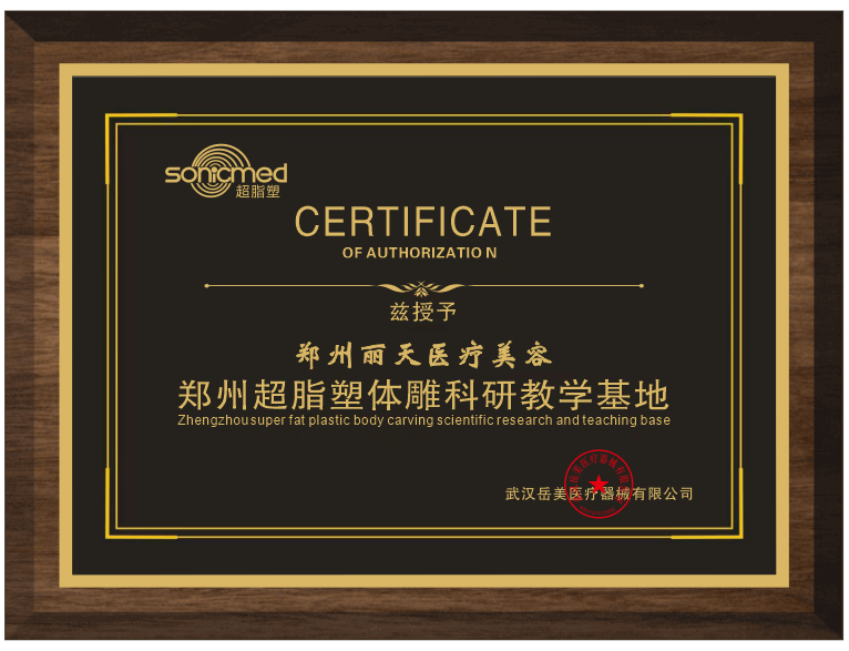 郑州丽天医疗美容获得郑州超脂塑体雕科研教学基地授证