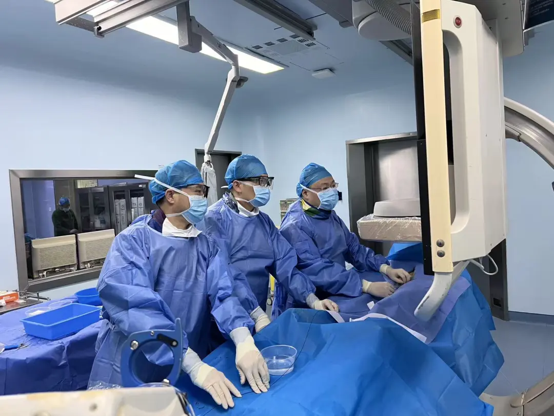 手术在 DSA 引导下开展,团队按照既定方案规范操作,小心清除滤器周围血栓,重建静脉通道,全程注重操作精准性与安全性,手术顺利完成。